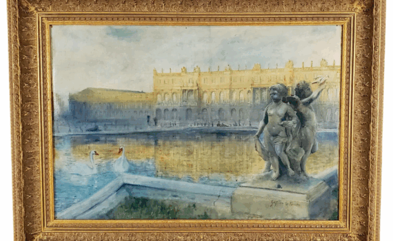 Château de Versailles Signé en bas à droite, dessin et aquarelle sur toile, 39 x 56 cm, Encadré 65 x […]