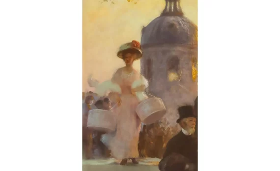 La modiste sur le pont des Saints-Pères Huile sur toile ; signé « Gaston La Touche » sur les marches […]