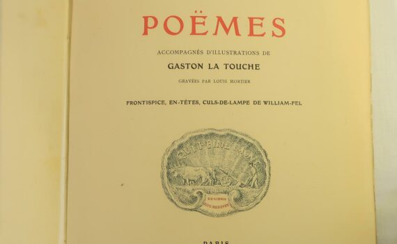 POËMES, accompagnés d’illustrations de Gaston La Touche gravées par Louis Mortier. Frontispice, en-têtes, culs-de-lampes de William Fel. Paris, aux dépens […]